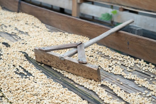Slow-dried on raised beds, parabolic dryers, or tarpaulins